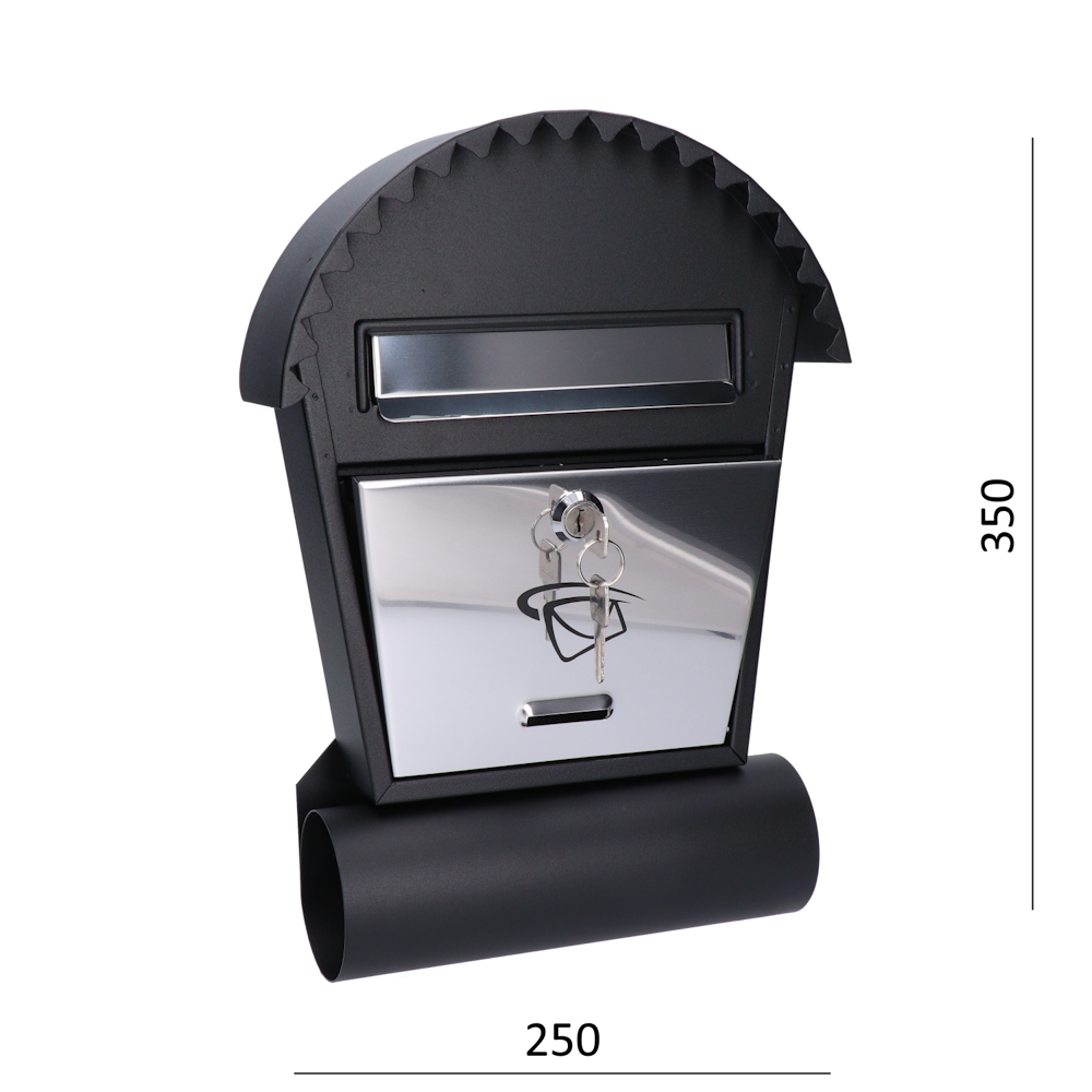 Schránka poštovní (250x350x50 mm) nerez / černá, max. formát listu: B6, leštěná nerez AISI430