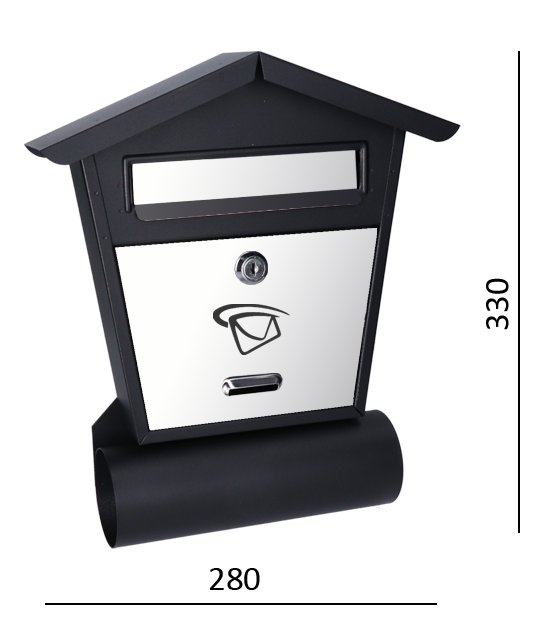 Schránka poštovní (280x330x50 mm) nerez / černá, max. formát listu: B6, leštěná nerez AISI430
