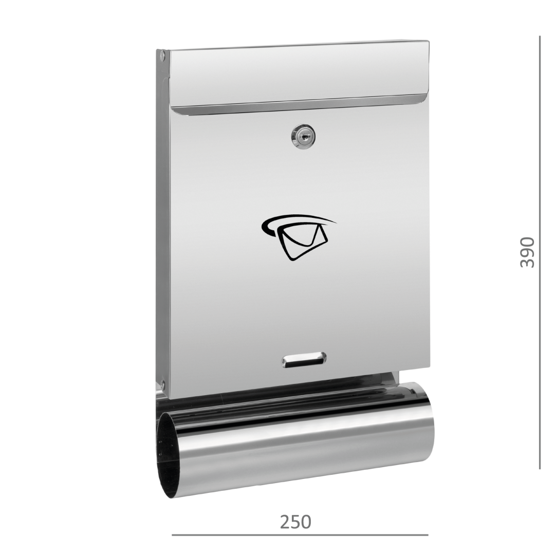 Poštovní schránka (390x250x60 mm), vhoz (20x240 mm) max. formát listu: A4, leštěná nerez /AISI304