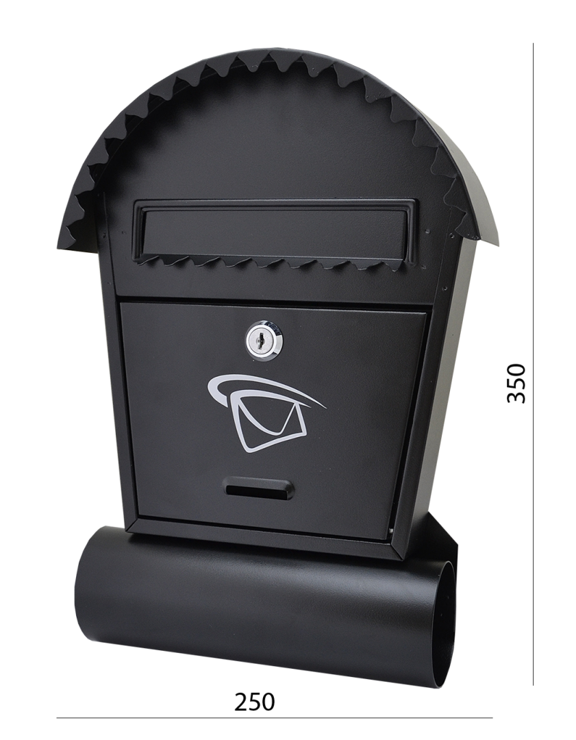 Poštovní schránka 250 x 350 x 50 mm, černá matná, max. formát listu: B6, tunel na noviny ø70 mm