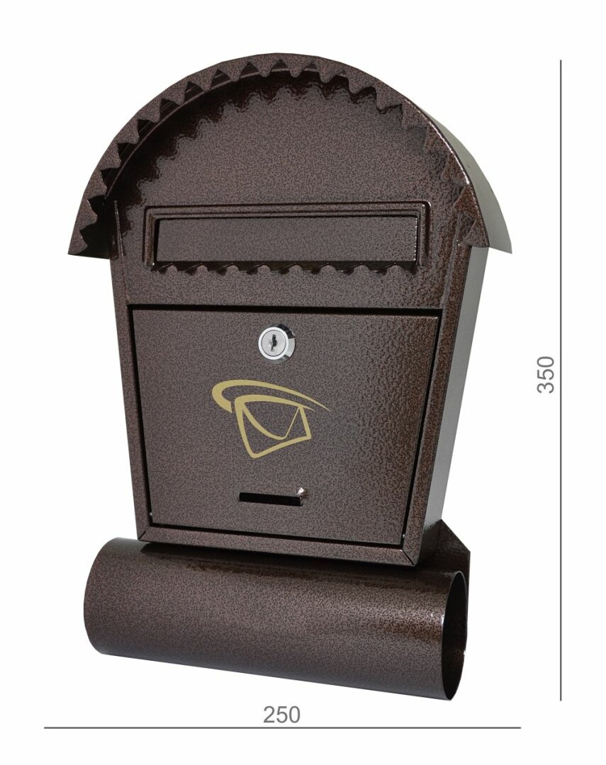 Poštovní schránka 250 x 350 x 50 mm, měděná antik, max. formát listu: B6, tunel na noviny ø70 mm