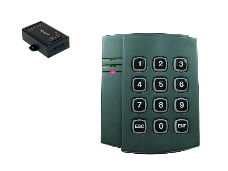 Sada wiegandové přístupové klávesnice se čtečkou karet a miniaturní vyhodnocovací jednotky Sboard až pro 1.000 uživatel. Vyhodnocovací jednotka se snadno vejde pod kryt motoru nebo do montážní krabice ve zdi (rozměry 65x54x19 mm, hmotnost 40g).  Pro nastavení slouží Master a Delete karta 125 kHz nebo dálkový ovladač, vše je součástí sady. Výstupem je relé se spínacím i rozpínacím kontakterm a zařízení tak lze použít kromě ovládání pohonu brány, také pro elektromagnetické zámky branky nebo dveří. Pro napájecí napětí použijte zdroj 12 VDC. Rozměry klávesnice jsou 88x108x30 mm.