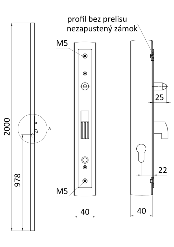 Profil 40x40x1,5 mm, H=2000 mm se zámkem, vhodný pro rám posuvné branky, bez povrchové úpravy, bez vložky