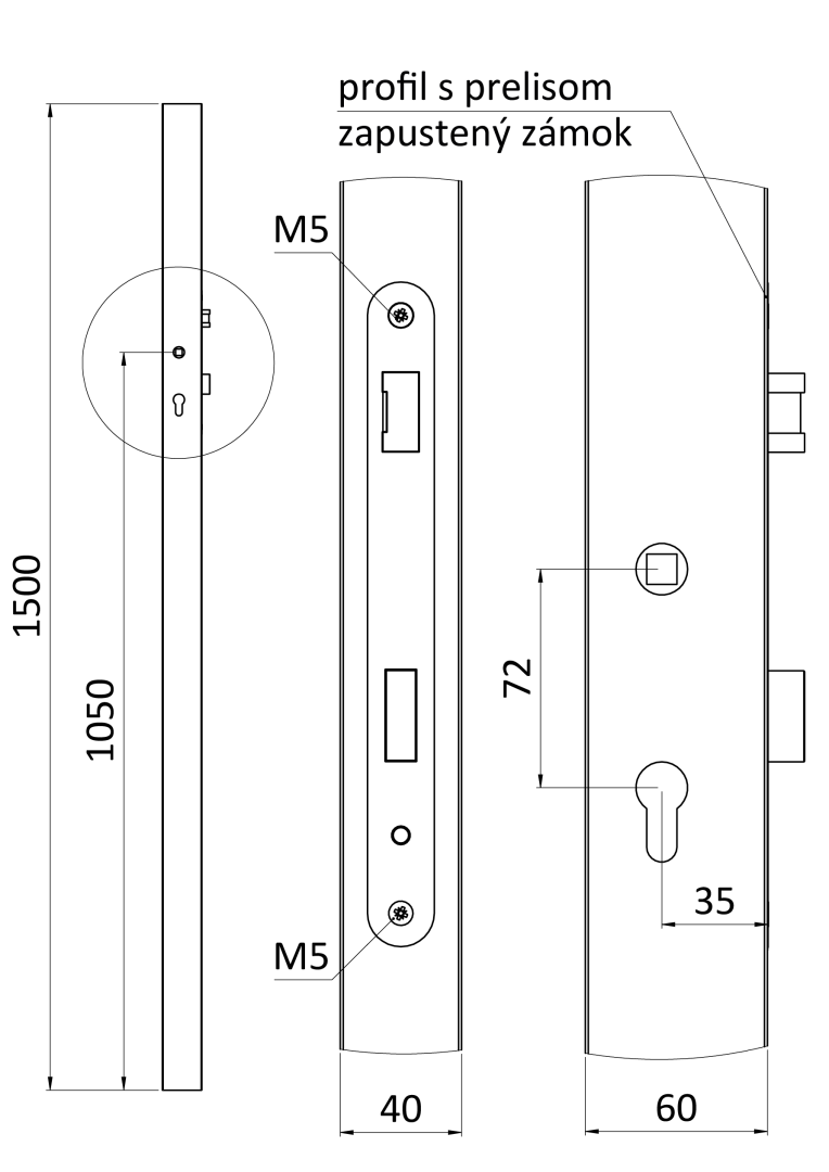 Profil 60x40x1,5 mm, H-1500 mm se zámkem, vhodný pro rám branky, bez povrchové úpravy Profil 60x40x1,5 mm, H-1500 mm se zámkem, vhodný pro rám branky, bez povrchové úpravy