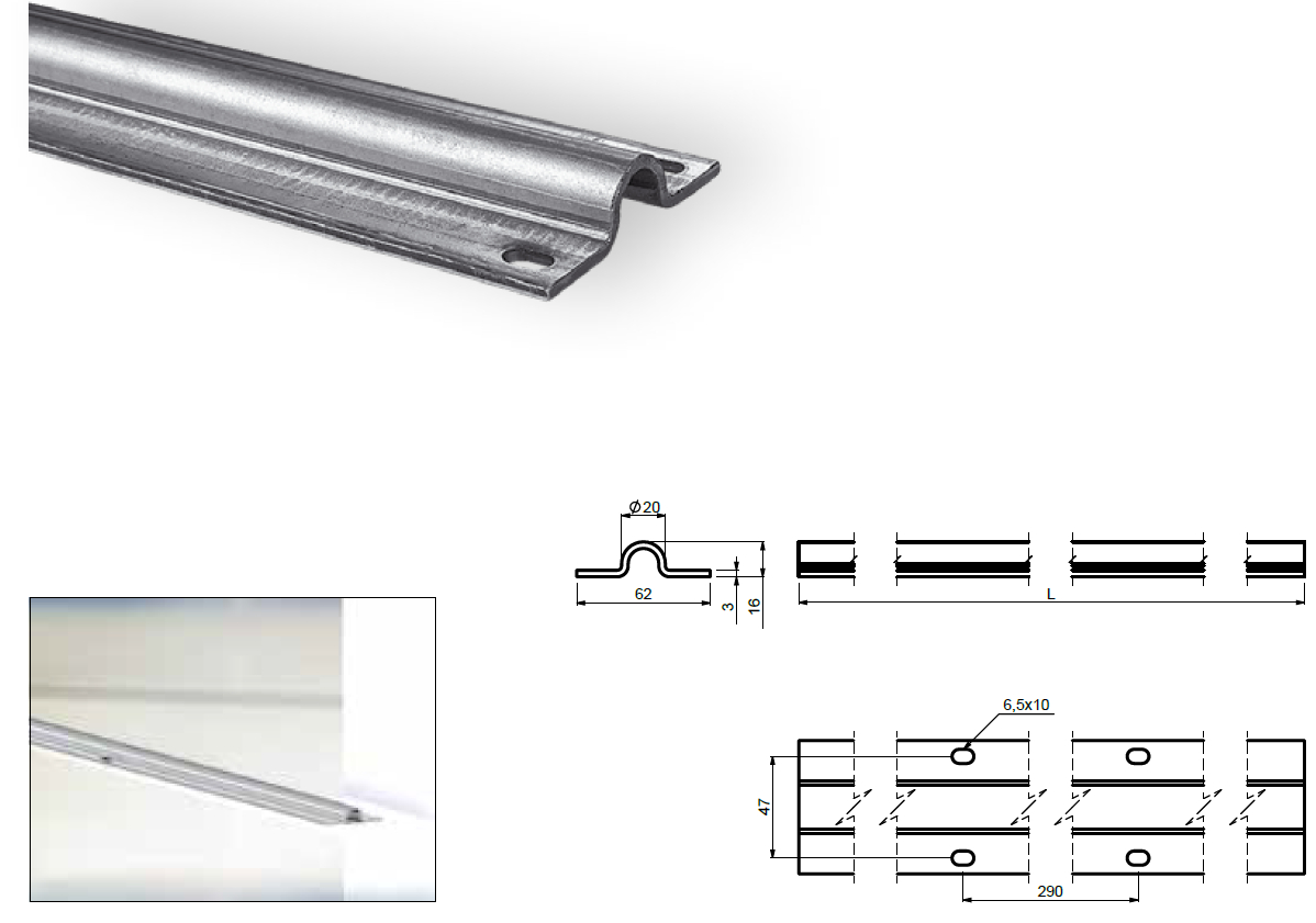 Galvanicky zinkovaný omega profil k přišroubování do podkladového betonu pro spodní vedení posuvné brány.