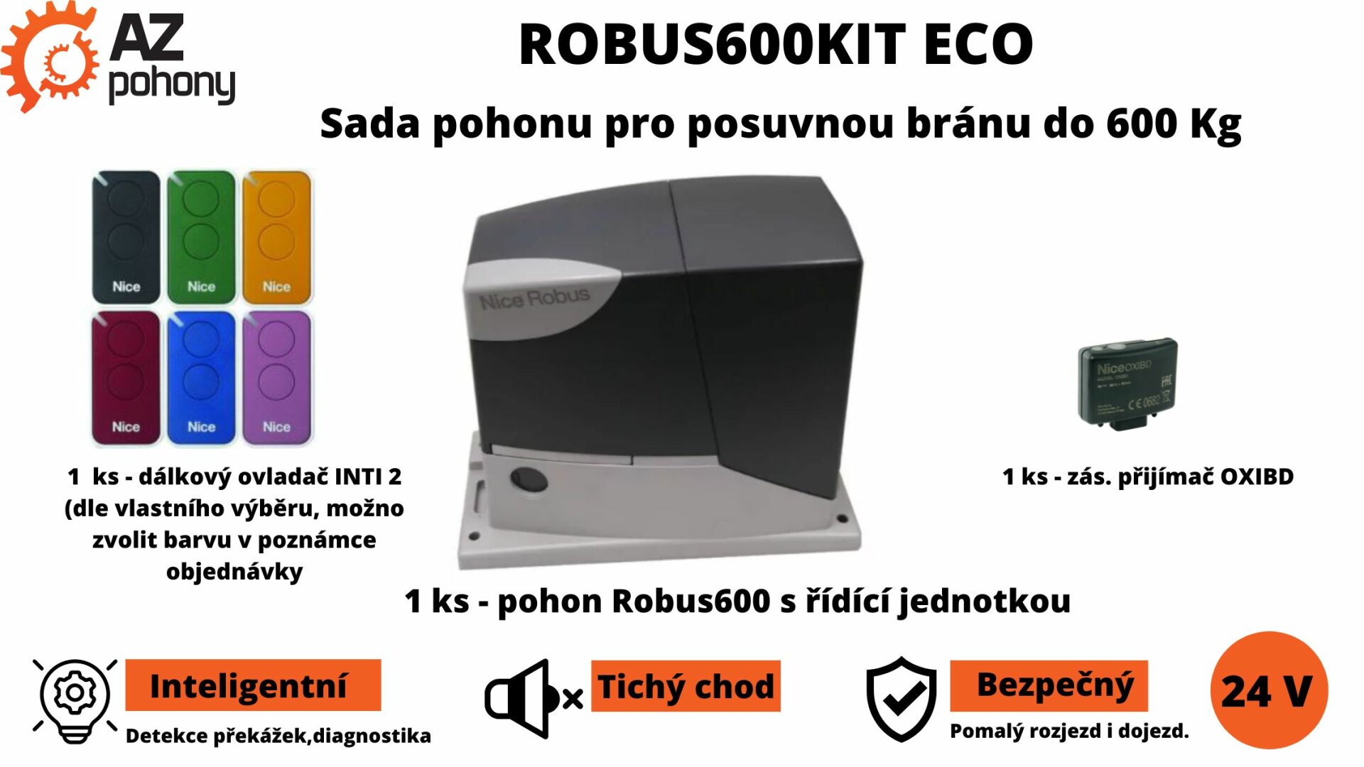 • 1 ks - elektromechanický pohon Robus600 se zabudovanou řídící jednotkou