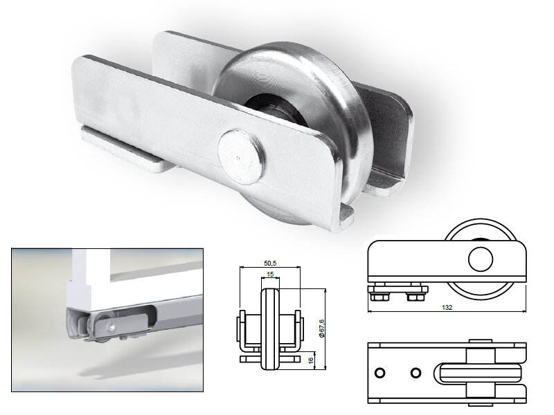 Dojezdové kolečko na spodek čela brány pro zaparkování brány v koncové poloze, určeno pro C profil 73x61 mm STAGE SB a STAGE SZ.  více v popisu produktu