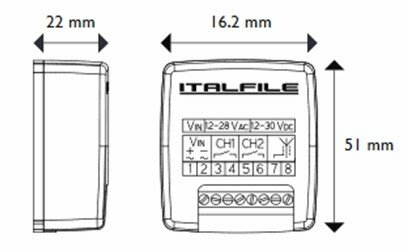 Rozměry:V 51 x D 16,2 x H 22 mm