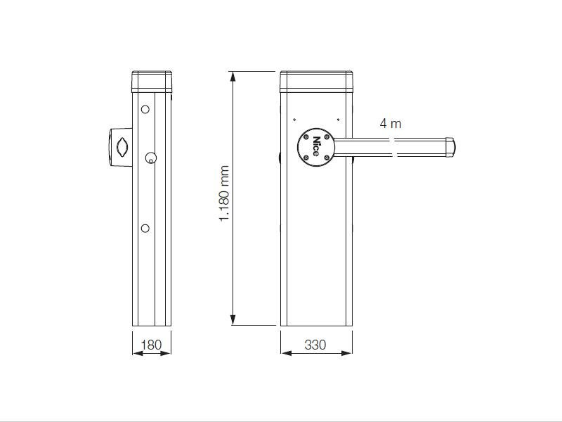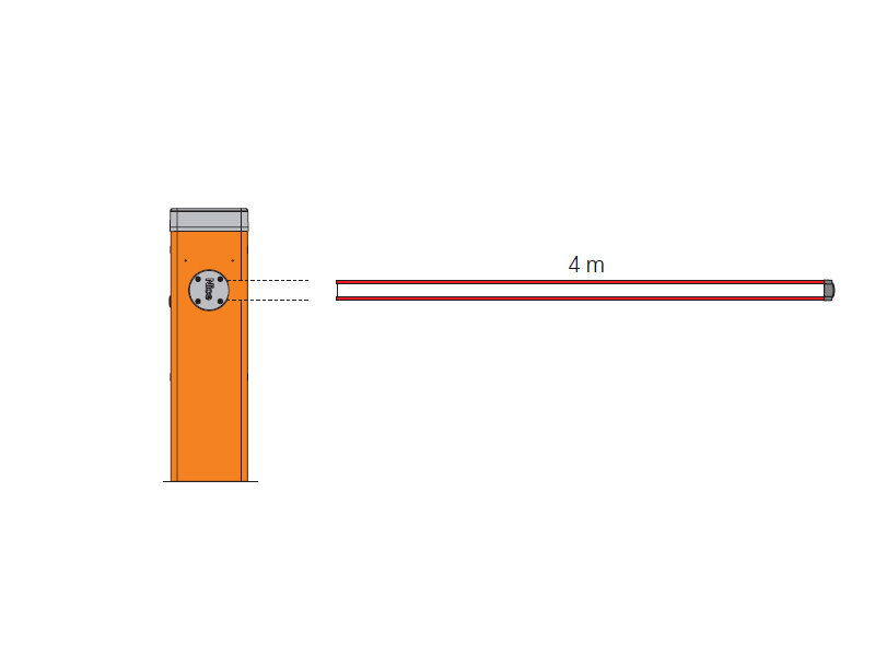 Sada rychlé elektromechanické závory pro intenzivní provoz s ramenem 4m. Závora je určena pro privátní, veřejné a průmyslové vjezdy. Disponuje možností plynule nastavit rychlost zdvihu a citlivost antinárazového zařízení. Skříň závory je vyrobena z pozinkované oceli, která je galvanicky zinkována s komaxitovým nástřikem.