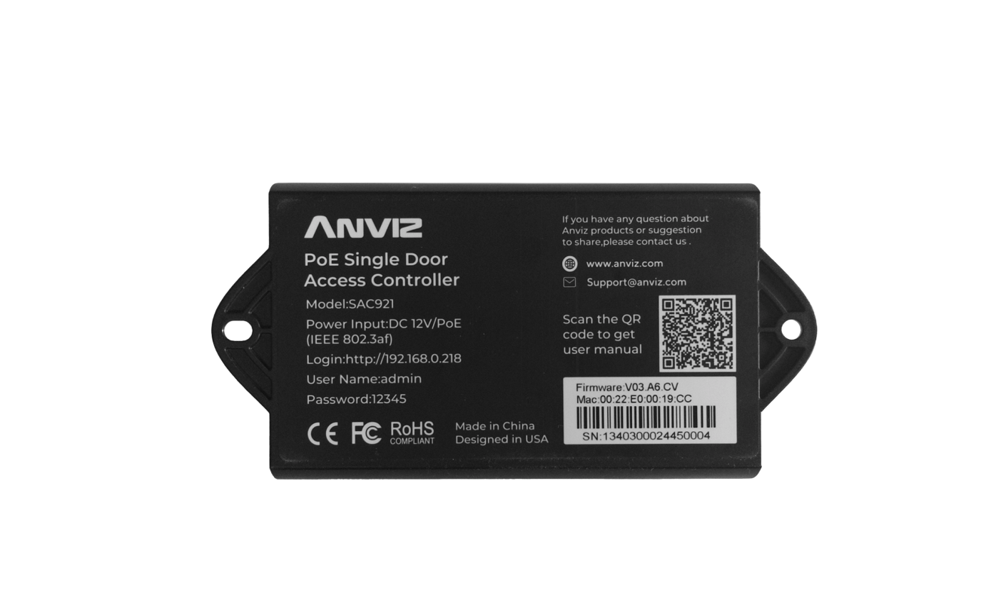 Anviz Single Door Controller SAC921 je kompaktní jednotka pro řízení přístupu až pro jeden vchod a dvě čtečky. Použití Power-over-Ethernet (PoE) pro napájení zjednodušuje instalaci a správu interního webového serveru, který lze snadno nastavit pomocí správce. Řízení přístupu Anviz SAC921 nabízí bezpečné a adaptabilní řešení, takže je ideální pro malé kanceláře nebo decentralizovaná nasazení.