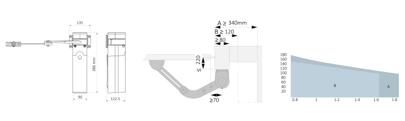 Bezpečný: vďaka nereverznému motoru a ramenu proti pricviknutiu, so zabudovaným mechanickým dorazom pri zatvorení (s montážou s celým ramenom).