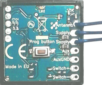 Sender - miniaturní čtyřkanálový vysílač, univerzální, dokáže vysílat různé pevné kódy. Lze použít i v automobilu (Car Mode) připojením k dálkovým světlům nebo brzdovému světlu.