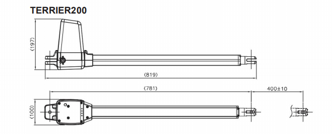 Pohon se vyznačuje tichým chodem, jednoduchým zapojením a instalací, dále skvělým designem (po redesignu ještě modernější), ale také množstvím funkcí, které nabízí. Pohon lze použít i pro otevírání brány směrem ven z pozemku. Píst pohonu je vyroben z nerezavějící oceli. Výhodou sady pohonu Terrier200 je možnost jednoduchého nastavení parametrů řídící jednotky. Samozřejmostí je částečné otevření brány - průchod pro pěší. Programově lze také nastavit čas automatického zavírání (od 10 s do 80 s). Předností pohonu Terrier200 je také velmi jednoduchá montáž.
