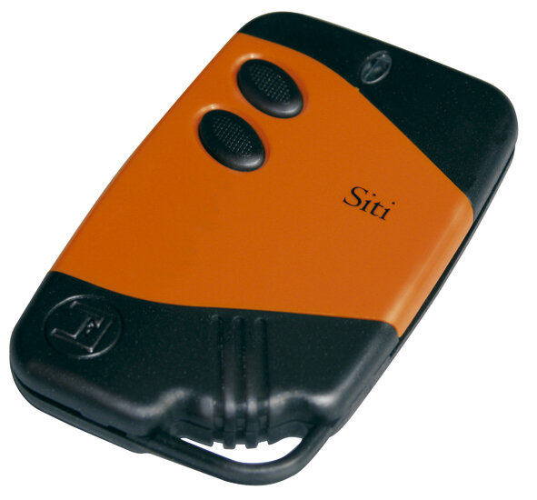 Fadini SITI 63/2 je malý, oranžovo černý vysílač s okem na klíče, baterie 2 x 3V již v ovládači.