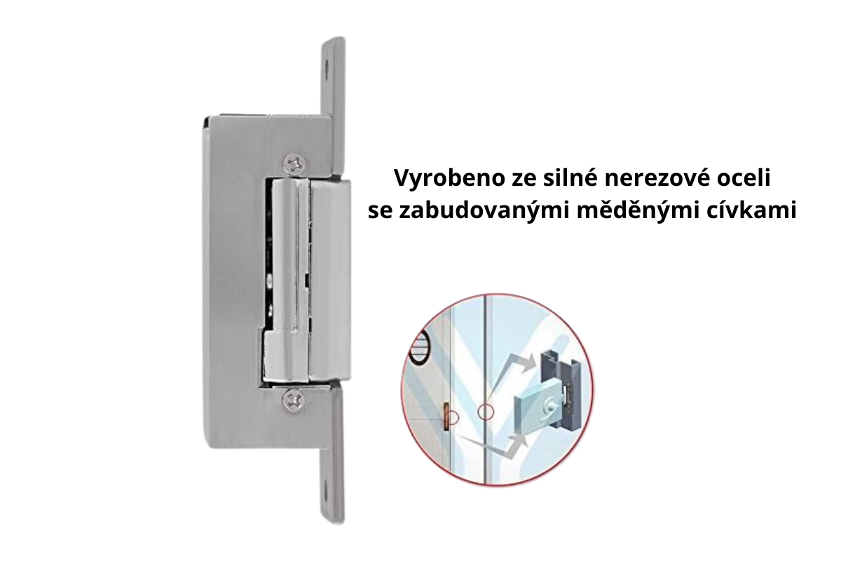 Doba uzamčení odpovídá době zapnutí, snadná instalace, odolnost a jednoduchá manipulace. Nabízí režim dvojitého odemknutí: zapnutí, vypnutí/NC, vypnutí, zapnutí/NO. Vyráběno z vysokopevnostní nerezové oceli s vestavěnými měděnými cívkami. Má speciální design a jednoduché nastavení vzdálenosti pojistného jazyka.
