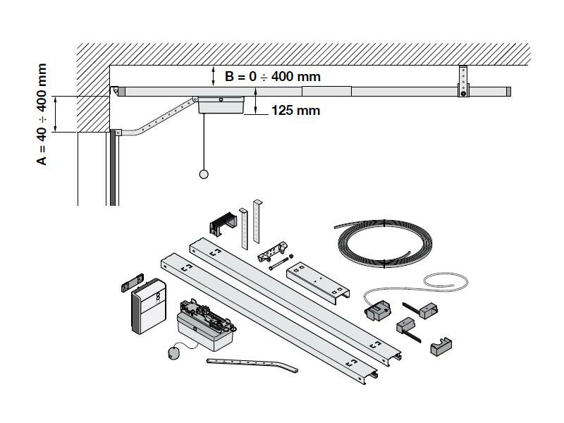SPY800KCE - stropní pohon italského výrobce Nice s řídicí jednotkou samostatně na zdi. Pohodlné programování a ovládací tlačítka vždy po ruce. Napájení ze sítě (230VAC), motor 24 V s tažnou silou do 800 N pro vrata do 12,5 m2 s dráhou 2x 1,6 m (3,2 m). V řídicí jednotce je integrován samoučící rádiový přijímač pro 150 ks ovladačů FLOR (Flo2R, Flo2RE, ON2E, P1, WM001C a další). Sada pro garážová vrata: