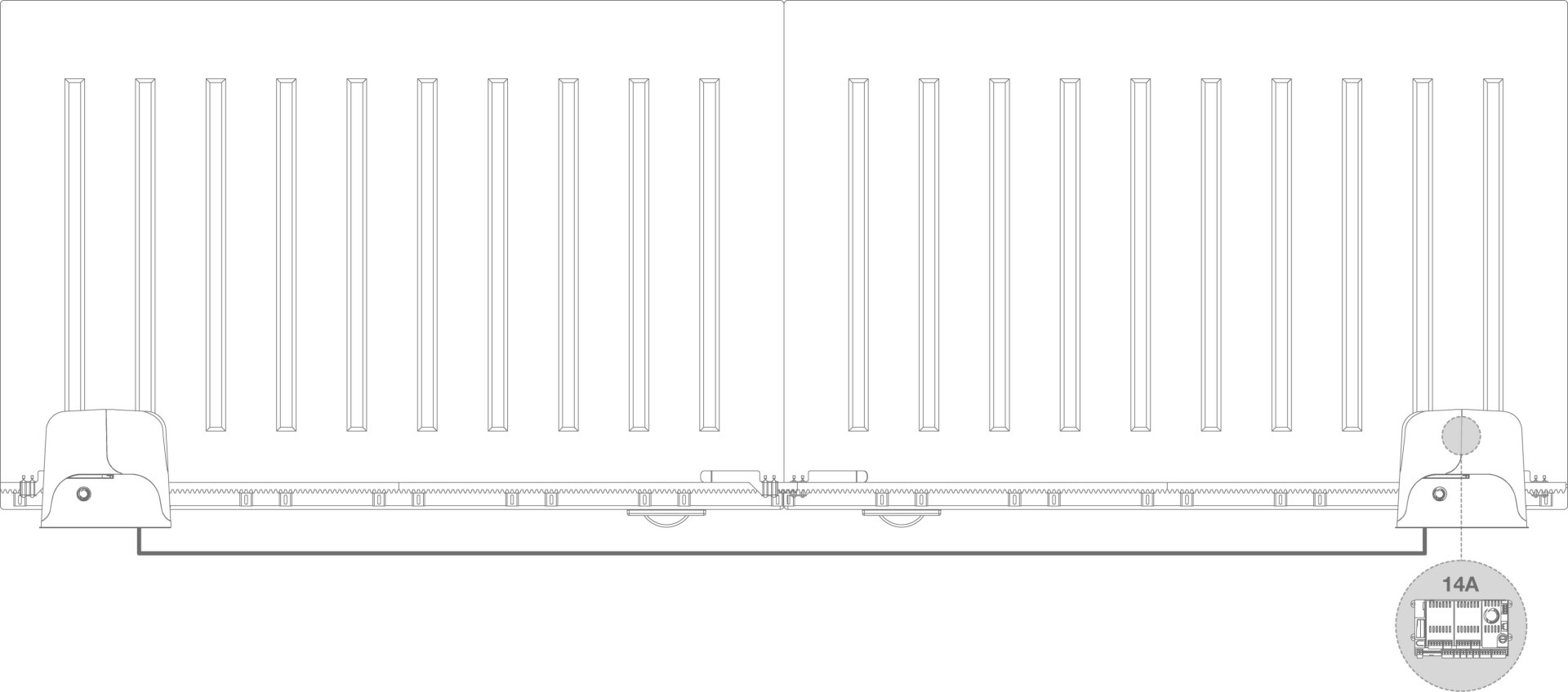 Konstrukci pohonu tvoří pevná základna z hliníku a symetrický kryt se zakulaceným tvarem, který umožňuje nasměrování světelného paprsku, vydávaného LED diodami systému Night Light System, k bráně a průjezdu.