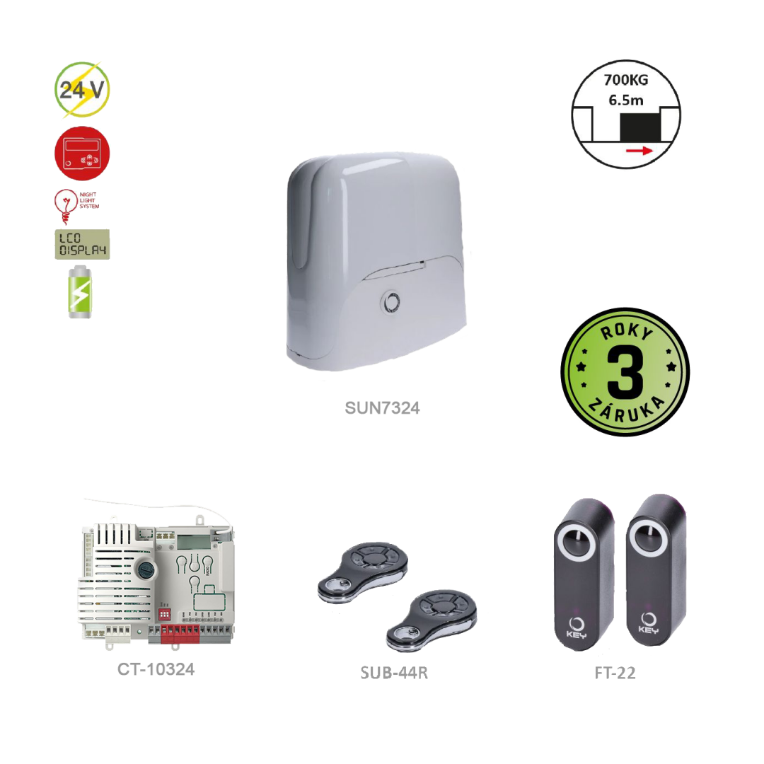 SUNKIT80 pro posuvnou bránu do 700 kg, 1x SUN7224 (24 V, 500 W, 34 Nm), 1x CT10224, 2x SUB-44R, 1 pár FT-32