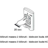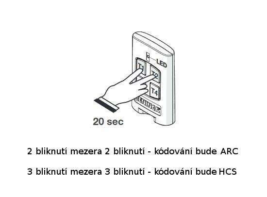Nahrazuje předchozí ovladače s původním typem kódu 64 bit HCS a má i nové kódování 128 bit ARC (Advanced Rolling Code), přepínat mezi nimi lze podržením horních tlačítek T1 a T2 současně na dobu 20 sekund. Z výroby je nastaven nový ARC. Rozměry 64x39x11 mm. Lze umístit do rámečku na zeď SMART nebo do držáku do auta TO. CLIP.