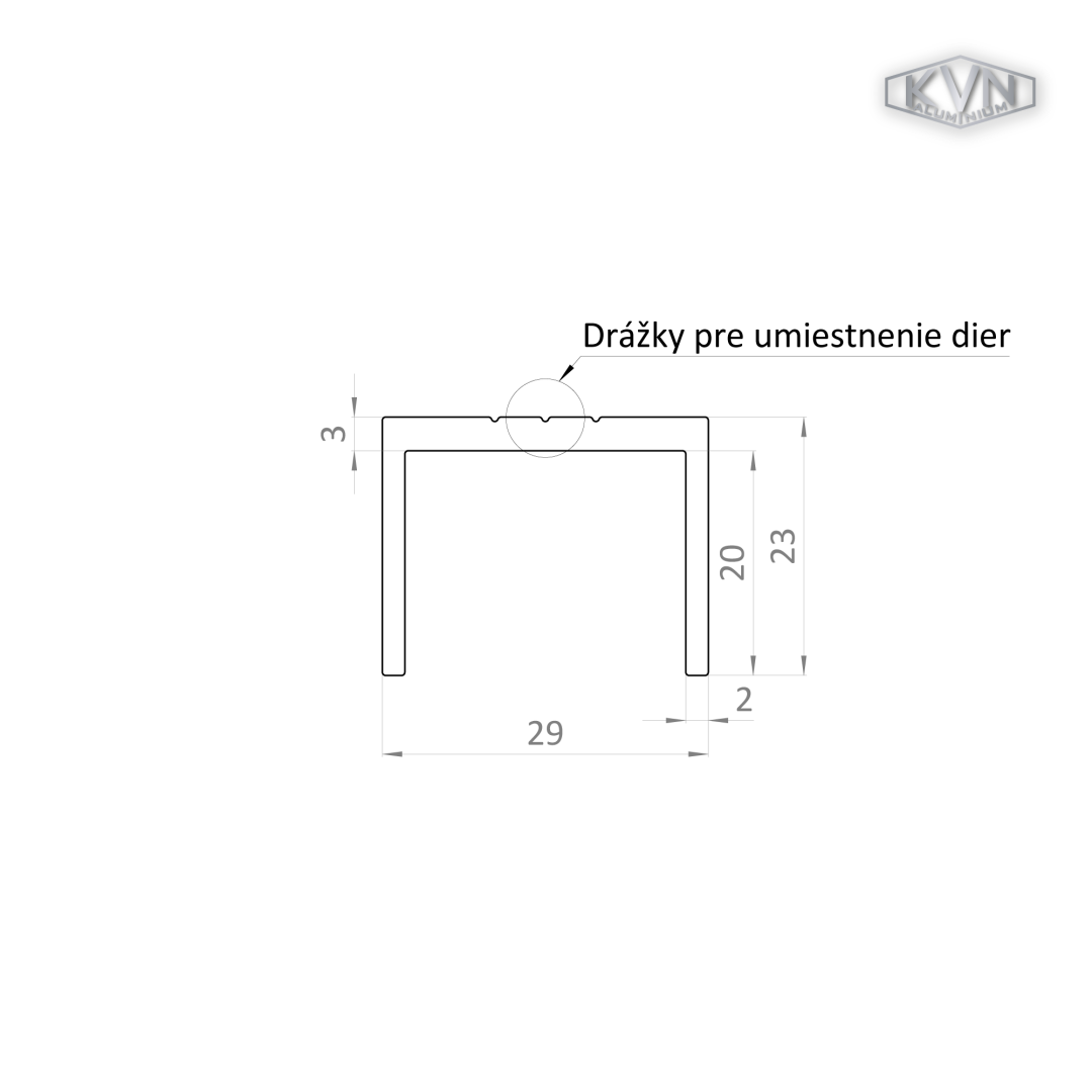 U profil 29x22x6000 mm, materiál EN AW-6060 T66, přírodní hliník bez povrchové úpravy, cena za KUS