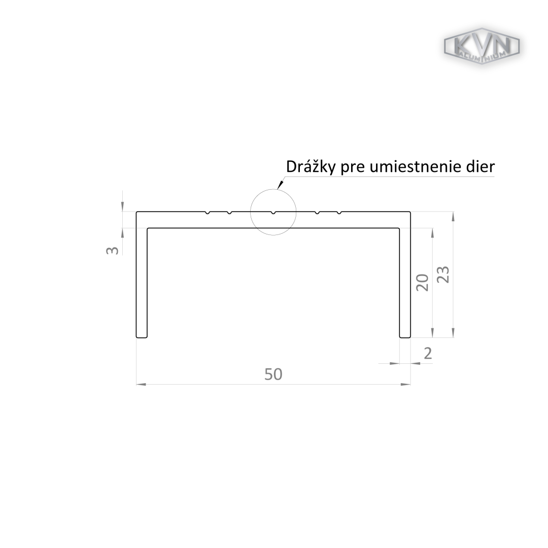 U profil 50x22x6000 mm, materiál EN AW-6060 T66, přírodní hliník bez povrchové úpravy, cena za KUS