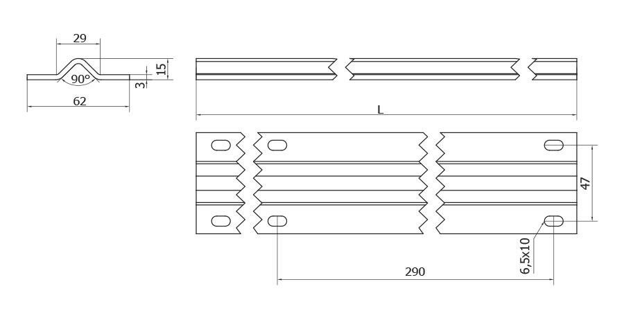 Galvanicky zinkovaný V profil k přišroubování do podkladového betonu pro spodní vedení posuvné brány.