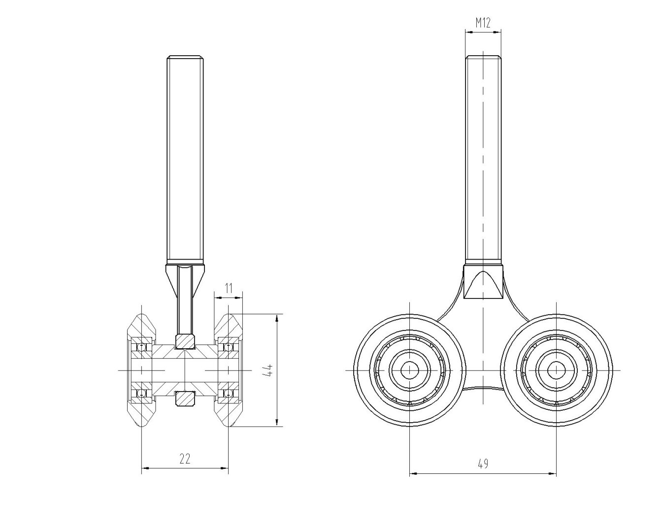 Závěsný nylonový vozík se 4 kolečky pro profil C920M. Nylonová kolečka eliminují nežádoucí zvuky při pohybu ve vodicím profilu.
