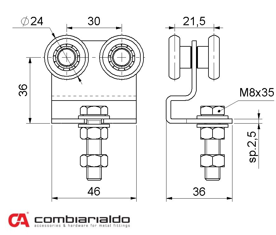 Vozík závěsný Combi Arialdo, 4 kolečka pro profil C920 Piccolo, nosnost 50kg