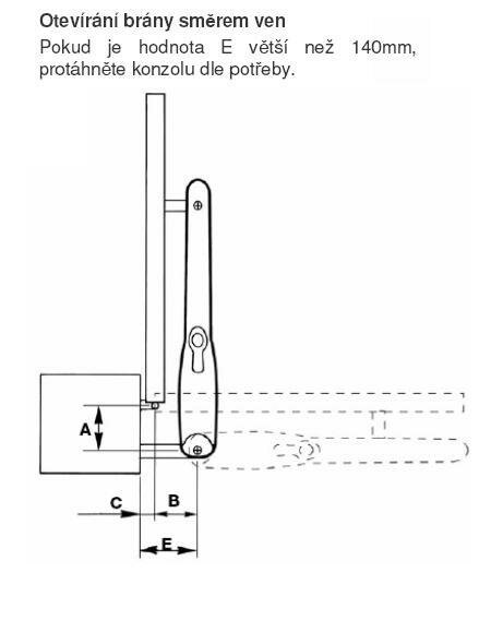 Pohony lze také použít pro otevírání brány směrem ven, více informací viz. obrázek níže.
