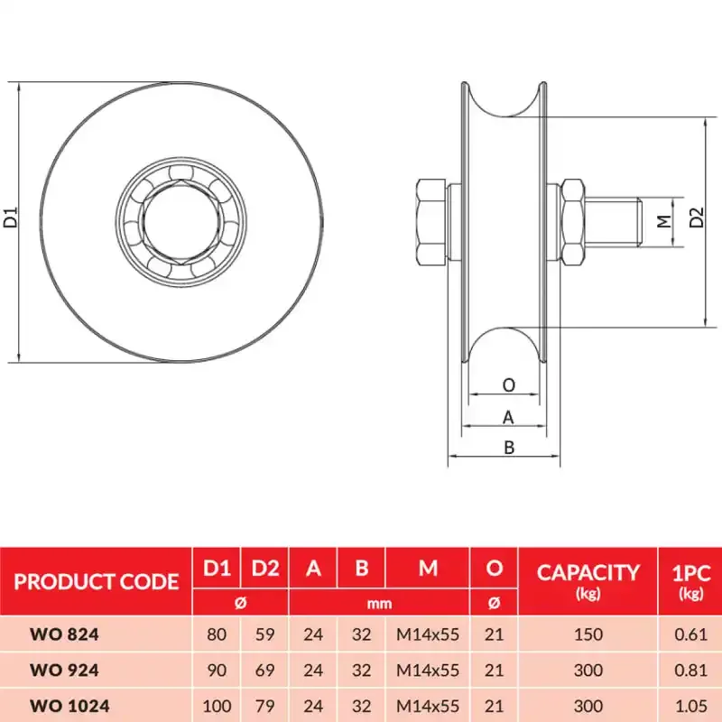 Cais WO 924 je pojezdové kolečko na posuvná vrata, určená pro O profil.