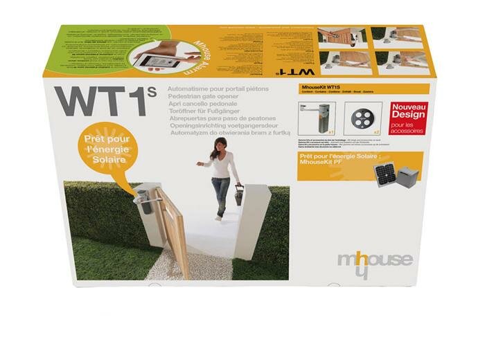 WT1S je sada pákového pohonu pro jednokřídlou bránu do šířky jednoho křídla maximálně 1,6m a váhy křídla do 100kg. Pohon lze využít i pro interiérové dveře atd. funkce je prověřená. Jedná se o samosvorný pohon. Mechanické odblokování při výpadku napájení. Pohon je připraven pro solární napájení (systém Mhouse Solemyo, typ PF), ale také pro záložní baterii, která zajistí chod pohonu i během výpadku napájecího napětí. Krabicové balení pohonu viz. fotografie níže. Pohon může fungovat samostatně (autonomně) bez jakéhokoliv dalšího napájení, není tedy nutné tahat k brance kabely, stačí dokoupit systém solárního napájení PF. Možnost záložní baterie typ PR2. Možná sleva v případě alternativní dodávky.