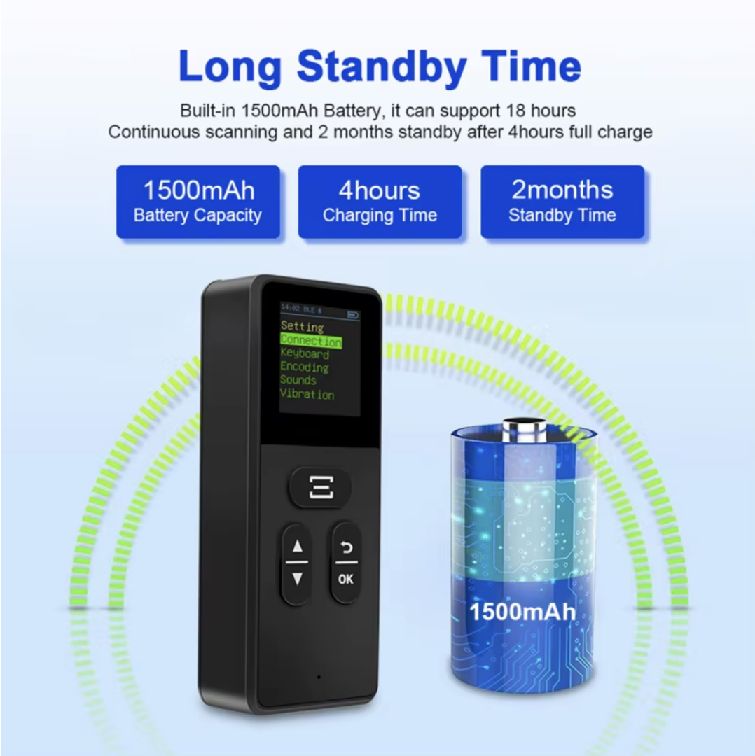Kompaktní 2D Bluetooth čtečka s hmotností pouhých 160 g, výdrží baterie až 18 hodin a pamětí pro více než 100 000 kódů v offline režimu. Podporuje všechny běžné platformy (Windows, MacOS, iOS, Android, Linux) a díky LCD displeji máte pod kontrolou stav baterie, připojení i nastavení.