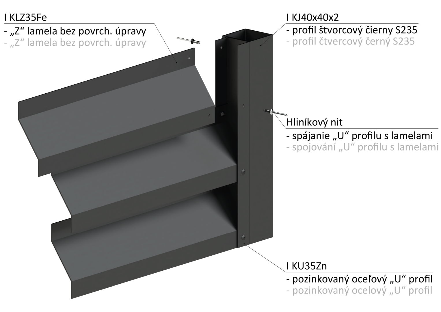 Z-profil lamela L=2000 mm, 20 x 40 x 20 x 1,5 mm, plech bez povrchové úpravy, použití pro plotovou výplň, možno použít pro bránový speciál KJL70x34x55x2, cena za 2 m kus