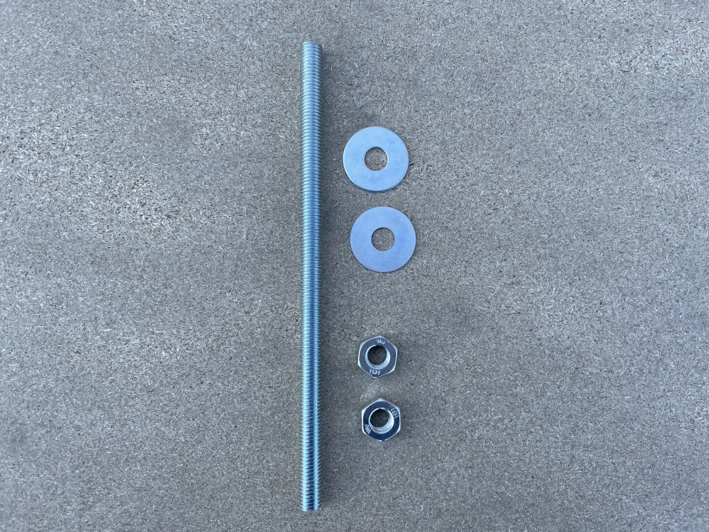 Závitová tyč 10 mm (délka 200 mm), 2 matky a 2 podložky.